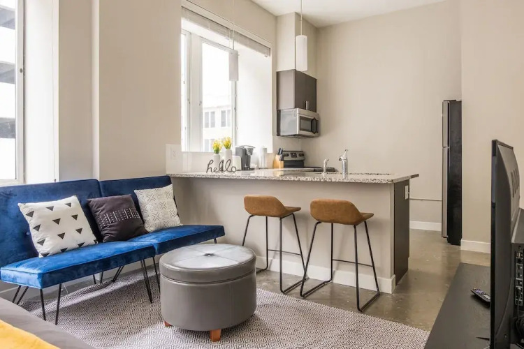 Отель Stylish 1BR in Downtown DSM, Perfect Location, адрес на карте Де-Мойн, 717 Locust Street, 50309, Des Moines, United States, с характеристиками номеров и доступностью онлайн бронирования на ресурсе ВашОтель.RU , стоимость проживания и удобства.