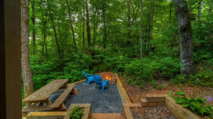 Отель Cherokee Creek by Escape to Blue Ridge 4 звезды, адрес на карте Дактаун, 443 Arrowhead Pass, Cherry Log, 30522, United States of America, с характеристиками номеров и возможностью онлайн бронирования на ресурсе vashotel.ru , цены проживания и удобства.