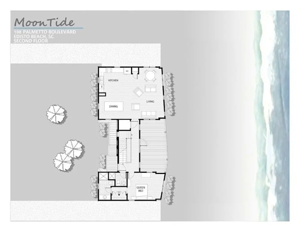 Отель Moontide - 5 Br home by RedAwning 3 звезды, адрес на карте Эдисто-Бич, 108 Palmetto Blvd., с характеристиками номеров и возможностью онлайн бронирования на ресурсе vashotel.ru , стоимость проживания и удобства.