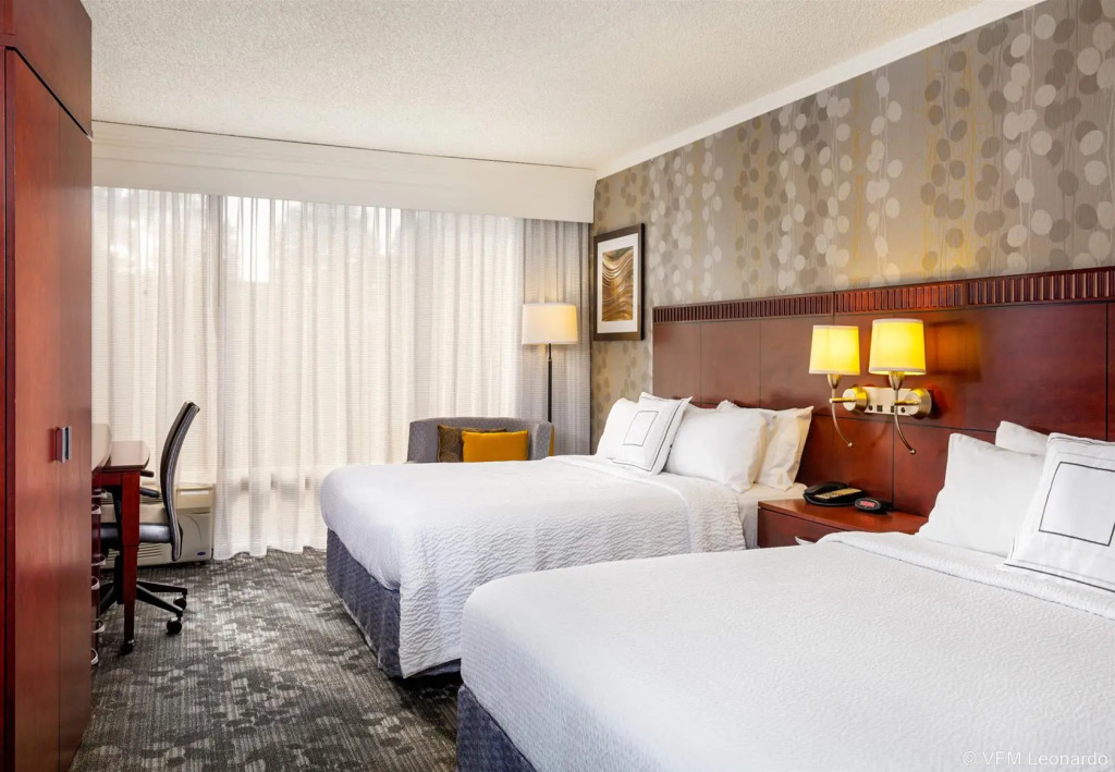 В кондиционируемых номерах (133) отеля Courtyard by Marriott предоставляются следующие удобства: кофеваркачайник и бесплатные газеты. Имеются балконы, откуда открывается вид на город или внутренний двор. Постельные принадлежности включают постельные принадлежности премиум-класса. В номерах имеется стол и диван-кровать. В номерах имеется холодильник и микроволновая печь. В ванных комнатах есть совмещенные душ и ванна, а также фен. Предоставляется бесплатный высокоскоростной проводной, а также беспроводной доступ в Интернет. В номерах имеется телефон с прямым набором номера с поддержкой голосовой почты; предоставляется возможность совершать бесплатные местные звонки (могут применяться ограничения). В каждом номере есть 42-дюйм. HD-телевизоры. Предлагается следующее: спутниковые каналы премиум-класса, бесплатные киноканалы и платные фильмы. В номерах имеется затемненные шторы и электронный контроль. По запросу предоставляется: массаж в номере и услуга пробуждения по телефону. Обслуживание номеров выполняется ежедневно. Все номера отеля – это номера для некурящих.