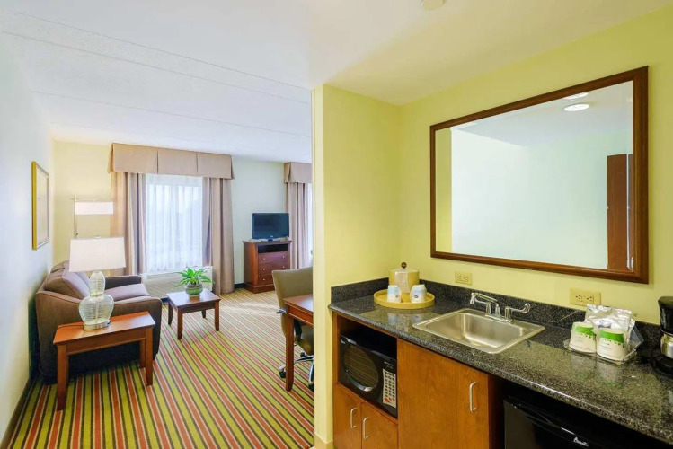 Отель Hampton Inn & Suites Frederick-Fort Detrick 2 звезды, адрес на карте Фредерик, 1565 Opossumtown Pike, с характеристиками номеров и правом онлайн бронирования на площадке vashotel.ru , стоимость проживания и удобства.