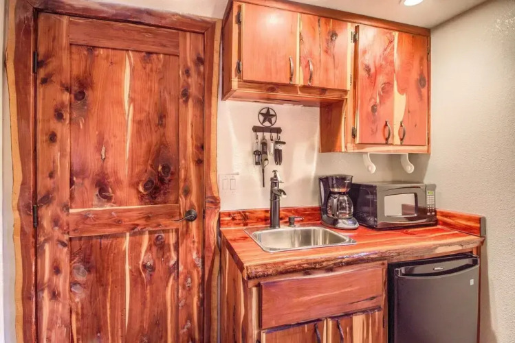 Отель Cedar Bliss Star Studio Bedroom Cabin by Redawning 1 звезда, адрес на карте Фредериксбург, 717 West Oak Drive, 78624, Fredericksburg, United States, с описанием номеров и правом онлайн бронирования на площадке ВашОтель.RU , цены проживания и удобства.