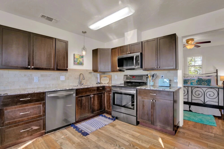 Отель Gorgeous Haus-cabin Combo-bbq and XL Patio-min to Main St! 4 звезды, адрес на карте Фредериксбург, 4788 Fm 2093, с характеристиками номеров и возможностью онлайн бронирования на площадке vashotel.ru , стоимость проживания и удобства.