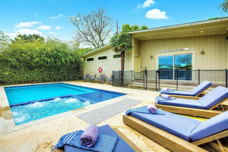 Отель Large Luxury Home W/pool, Hot-tub, Grill/bar, &cin 3 звезды, адрес на карте Фредериксбург, 907 W. Travis St., с описанием номеров и доступностью онлайн бронирования на ресурсе ВашОтель.RU , цены проживания и удобства.