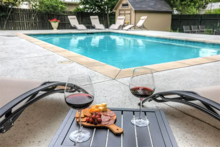 Отель Luxury Haus Near Main St W/pool & Fire Pit 3 звезды, адрес на карте Фредериксбург, 219 W Creek St, с характеристиками номеров и возможностью онлайн бронирования на площадке vashotel.ru , стоимость проживания и удобства.