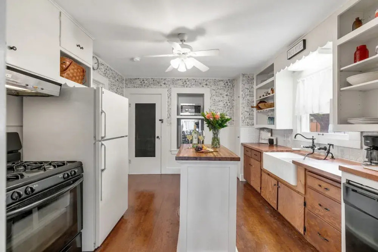 Отель New! Charming Haus Near to Main St! 3 звезды, адрес на карте Фредериксбург, 611 Franklin St, с описанием номеров и доступностью онлайн бронирования на ресурсе vashotel.ru , цены проживания и удобства.