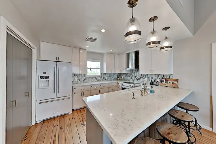 Отель Coastal Winds: Beachfront Beauty - Steps To Sand 3 Bedroom Home 3 звезды, адрес на карте Галвестон, 21302 Gulf Dr, с описанием номеров и возможностью онлайн бронирования на ресурсе vashotel.ru , цены проживания и удобства.