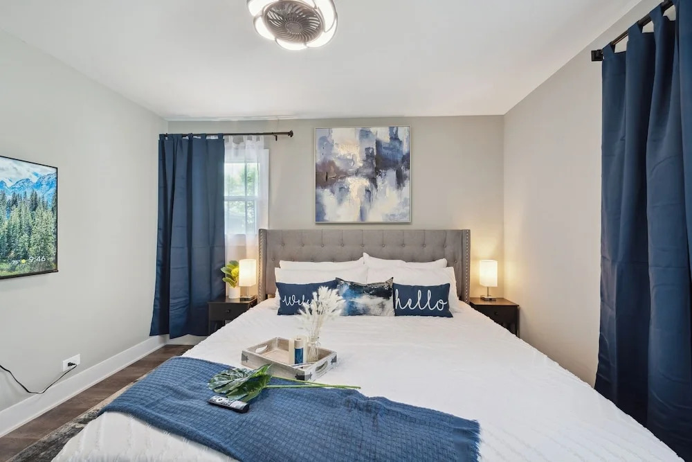 Место для тех, кто устал от соседей! Коттедж «Charming Contemporary Family Home 3 Bedroom Home by RedAwning» расположен в Гленвью. Этот коттедж находится в 3 км от центра города. Рядом с коттеджем можно прогуляться. Неподалёку: Трибун Тауэр, Театр Кадилак Пэлас и Ригли Билдинг.