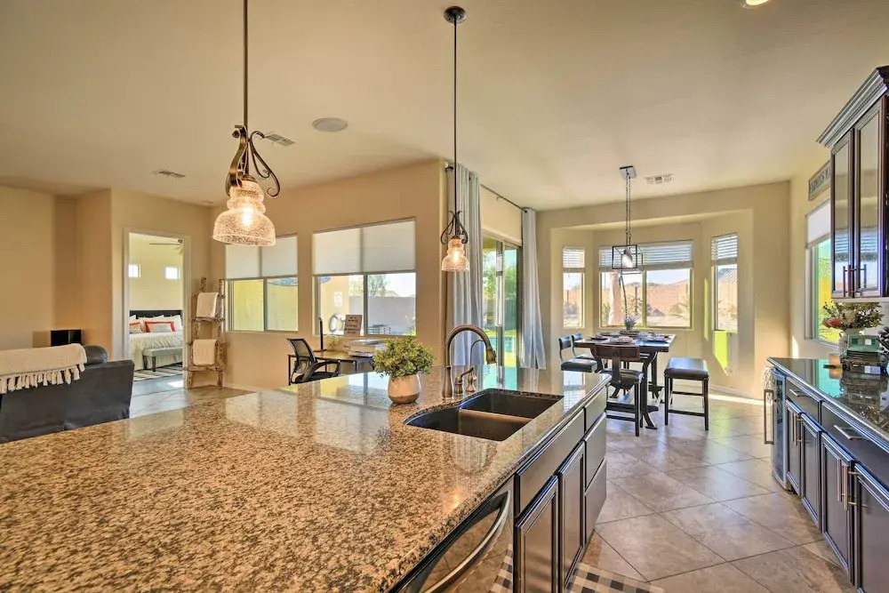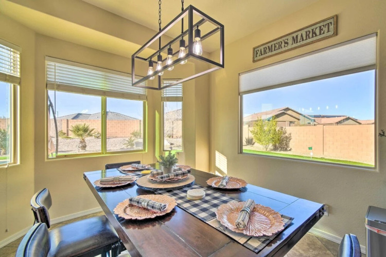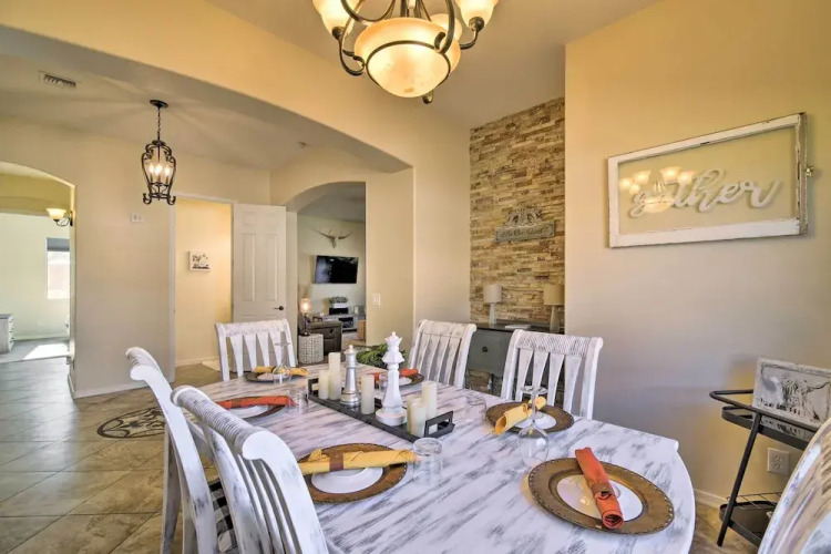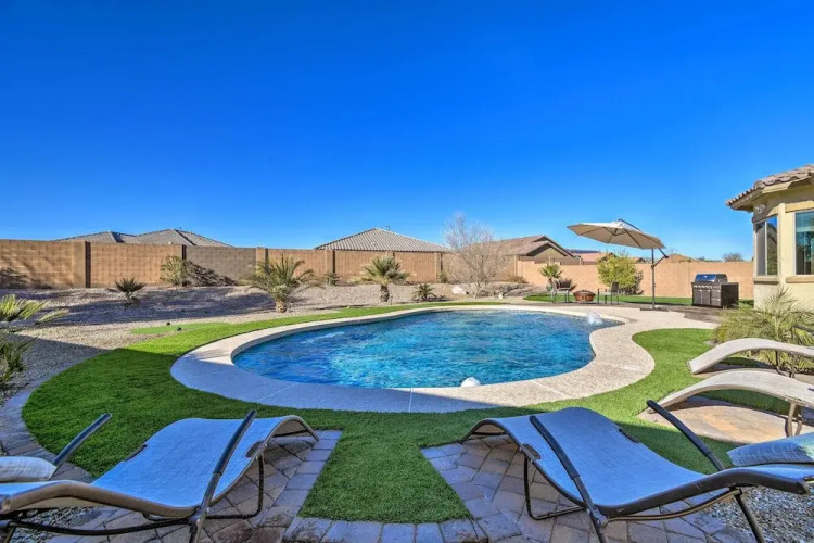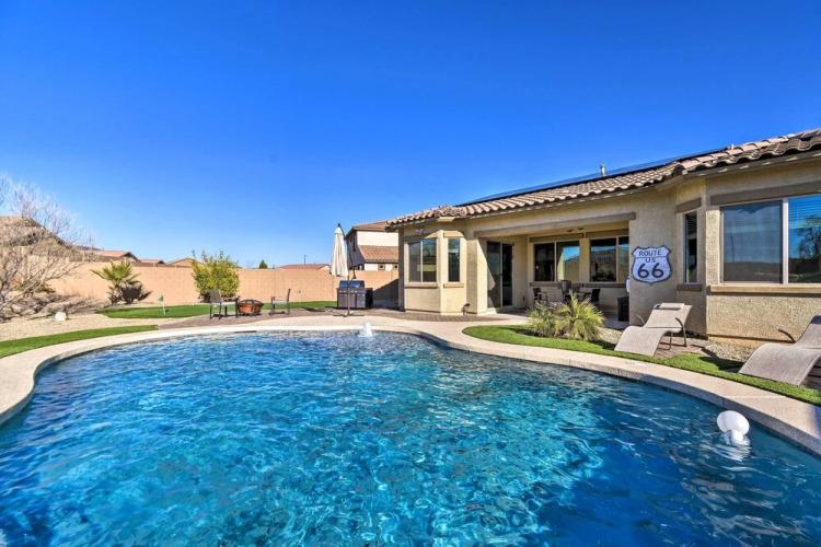 Отель Goodyear Retreat w/ Pool, Fire Pit & Putting Green 3 звезды, адрес на карте Гудиер, 18140 W Thunderhill Pl, с характеристиками номеров и правом онлайн бронирования на сайте ВашОтель.RU , цены проживания и удобства.
