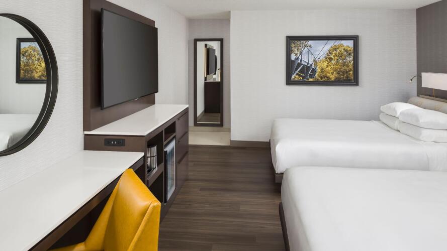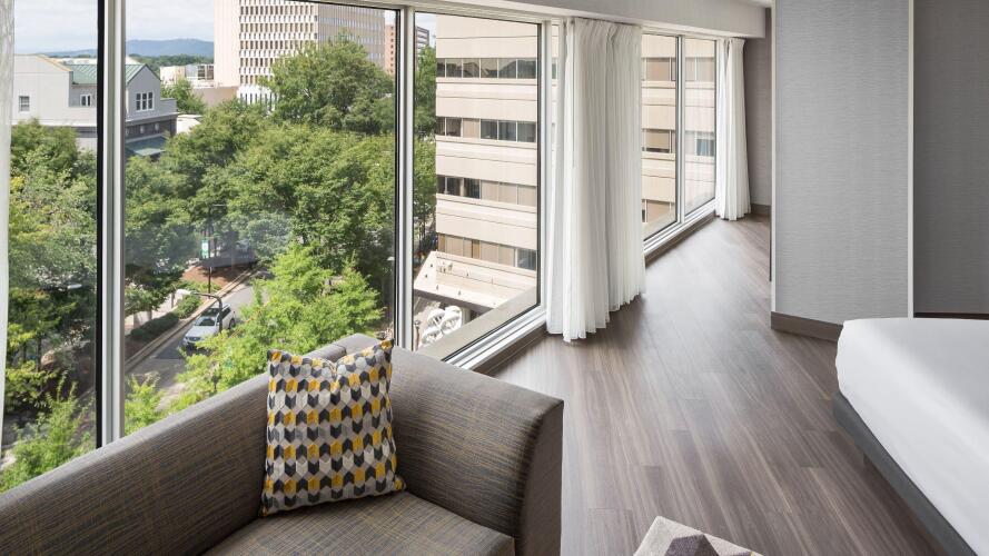 В отеле Hyatt Regency Greenville имеется 330 номеров, оборудованных ванной комнатой с полным набором туалетных принадлежностей и феном. В каждом номере есть кондиционер, также телефон и телевизор. По запросу предоставляются детские кроватки.