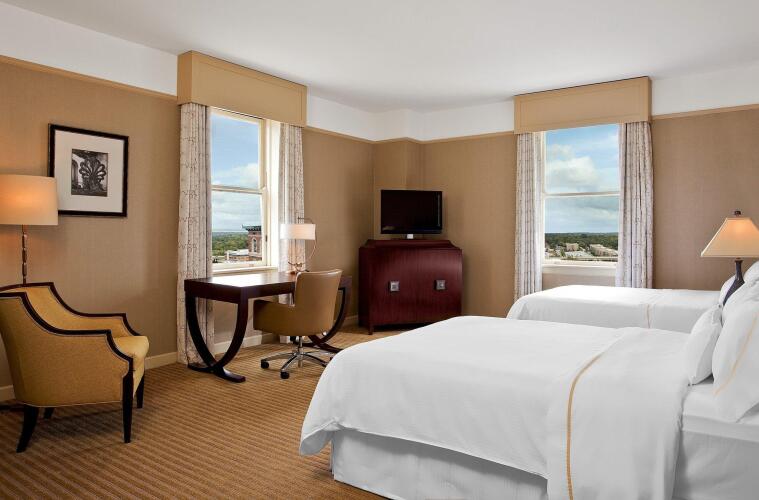 В кондиционируемых номерах (200) отеля The Westin Poinsett Greenville предоставляются следующие удобства: кофеваркачайник и сейфы. Постельные принадлежности включают: пружинный ортопедический матрас, а также дизайнерские постельные принадлежности, три простыни и перьевое одеяло. Бесплатно предоставляется беспроводной доступ в Интернет. В номерах предоставляются стол и бесплатная газета (пн-пт), а также многоканальный телефон с поддержкой голосовой почты. В каждом номере есть телевизор. Предлагается следующее: спутниковые каналы премиум-класса, игровая приставка и платные фильмы. Также предоставляются следующие удобства: электронный контроль и фен. По запросу предоставляется: вечерняя уборка номера перед сном и услуга пробуждения по телефону. Обслуживание номеров выполняется ежедневно.