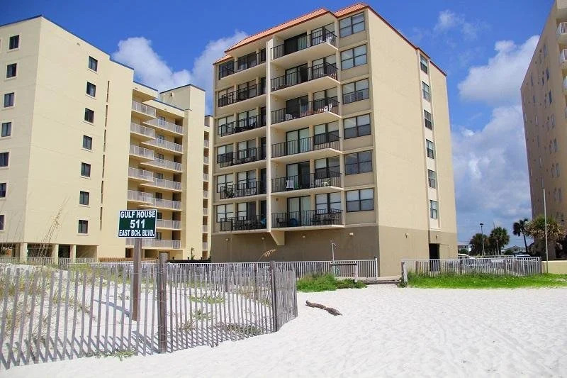 Отель Gulf House by Sugar Sands Realty 1 звезда, адрес на карте Галф-Шорc, 511 East Beach Boulevard Gulf Shores Alabama 36542, с описанием номеров и возможностью онлайн бронирования на сайте vashotel.ru , цены проживания и удобства.