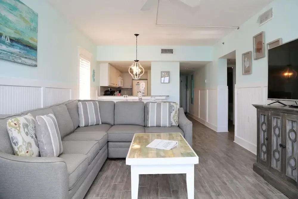 Отель Tropical Winds 304 3 Bedroom Condo by RedAwning, адрес на карте Галф-Шорc, 1003 West Beach Blvd, с характеристиками номеров и возможностью онлайн бронирования на ресурсе vashotel.ru , цены проживания и удобства.