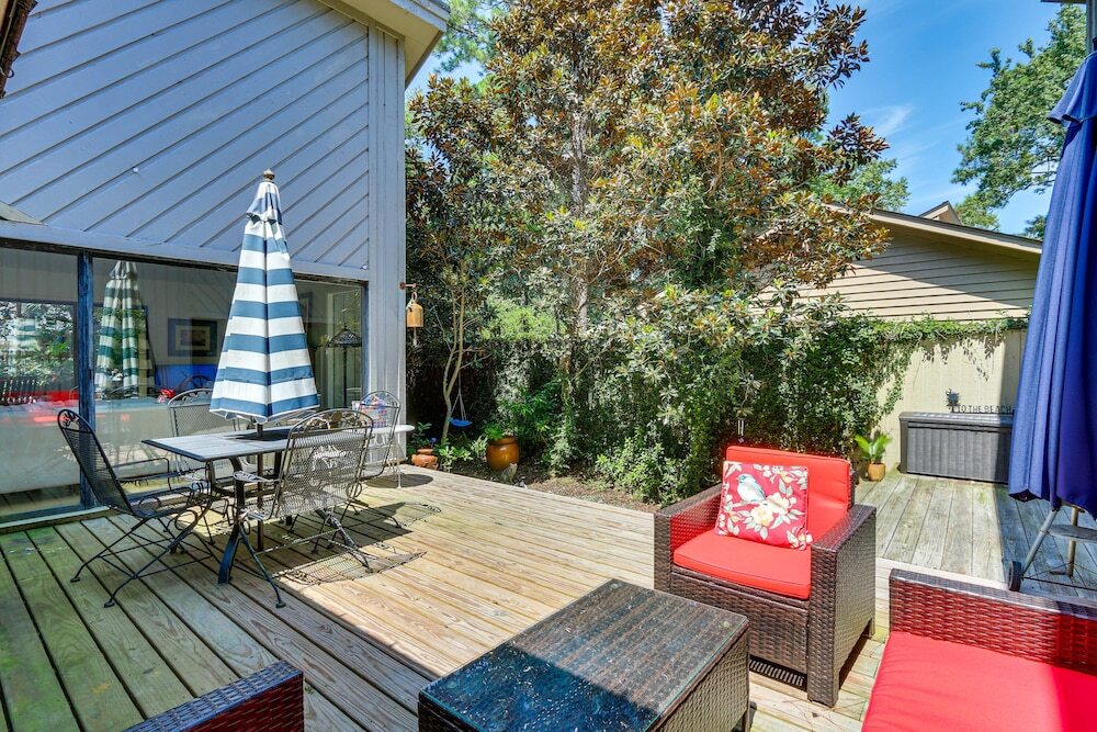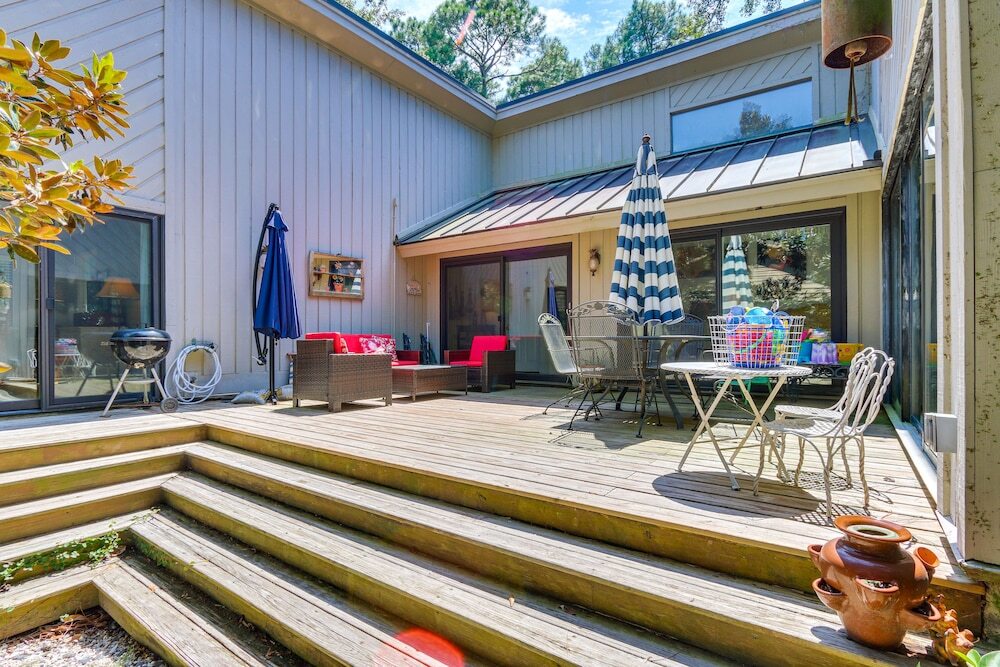 Хотите сбежать от суеты города и отдохнуть? Коттедж «Bright Hilton Head Cottage w/ Deck ~ 2 Mi to Beach» располагается на острове Хилтон Хед. Этот коттедж находится в 5 км от центра города. Рядом с коттеджем — Heron Point by Pete Dye at Sea Pines Resort и Торгово-развлекательный центр The Village at Wexford.