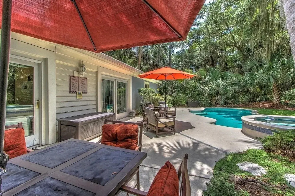Отель New Listing! 3rd-row Oasis W/ Private Pool & Spa 4 Bedroom Home, адрес на карте о. Хилтон Хед, 119 S Forest Beach Dr, с характеристиками номеров и возможностью онлайн бронирования на площадке ВашОтель.RU , цены проживания и удобства.