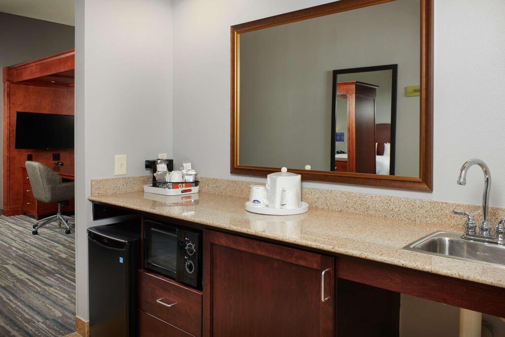 Отель Hampton Inn & Suites Holly Springs располагает 124 номерами, интерьеры которых выдержаны в красно-белой гамме. В каждом номере есть кондиционер, телевизор с возможностью просмотра спутниковых каналов и чайные и кофейные принадлежности.