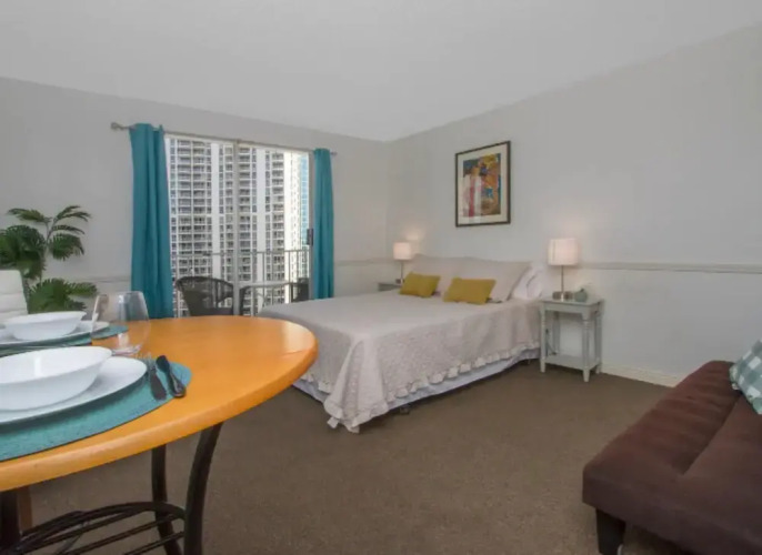 Отель Apartamento Vacacional en Hawái, адрес на карте Гонолулу, 1777 Ala Moana Blvd, с описанием номеров и возможностью онлайн бронирования на сайте ВашОтель.RU , цены проживания и удобства.
