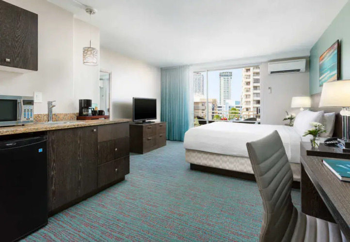 Бюджетный вариант для активного отдыха — отель «Courtyard Waikiki Beach» находится в Гонолулу. Этот отель расположен в 4 км от центра города. Рядом с отелем — Royal-Moana Beach, пляж Waikiki и Гавайский музей армии США.