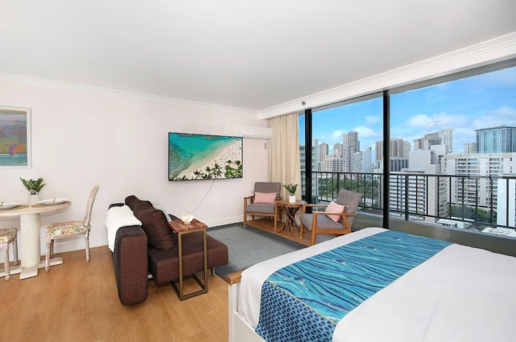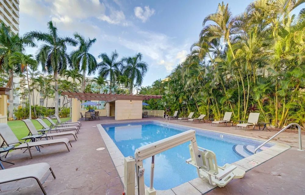 Отель Oahu Royal Garden At Waikiki 1711 Condo, адрес на карте Гонолулу, 440 Olohana St, с описанием номеров и возможностью онлайн бронирования на сайте vashotel.ru , стоимость проживания и удобства.