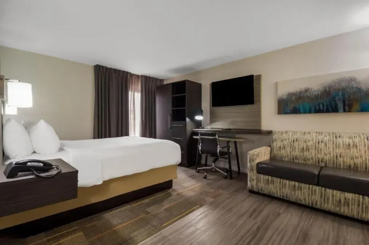 Отель MainStay Suites Houston 2 звезды, адрес на карте Хьюстон, 7887 West Tidwell Road Building B Houston Texas 77040, с характеристиками номеров и доступностью онлайн бронирования на площадке vashotel.ru , стоимость проживания и удобства.