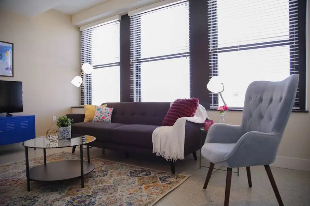 Отель Classic Downtown 1BR Apt with Views, адрес на карте Индианаполис, 333 North Pennsylvania Street, с описанием номеров и правом онлайн бронирования на площадке vashotel.ru , стоимость проживания и удобства.