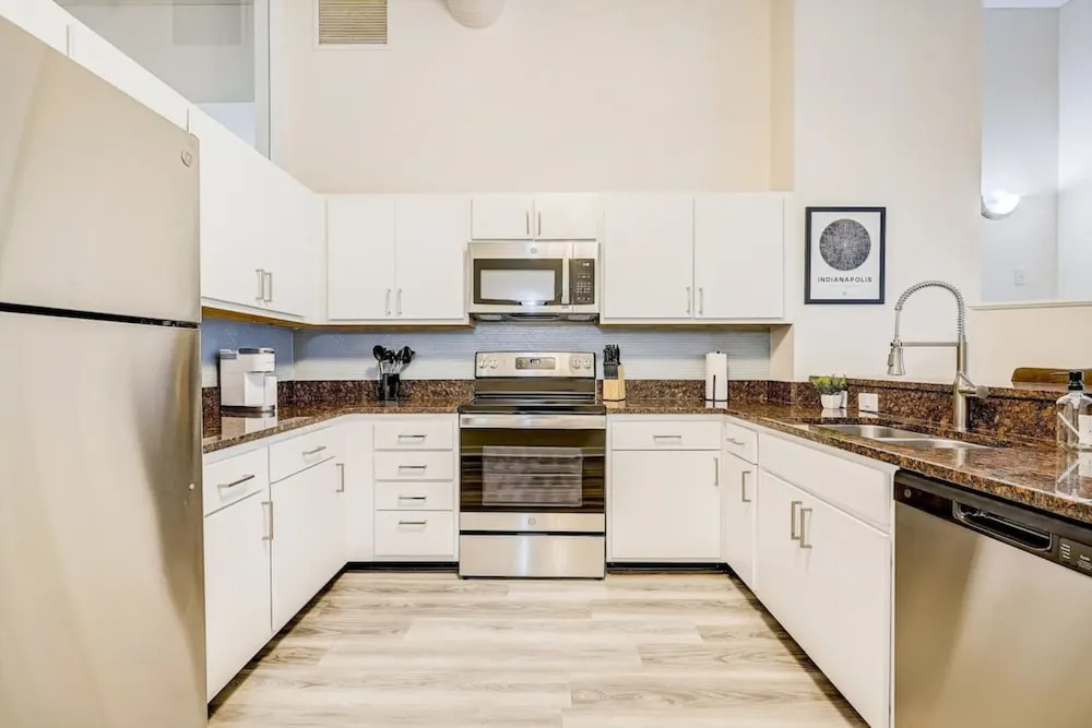 Отель TWO CozySuites Apt w Skybridge Access 2, адрес на карте Индианаполис, 50 N Illinois St, с характеристиками номеров и доступностью онлайн бронирования на сайте vashotel.ru , цены проживания и удобства.