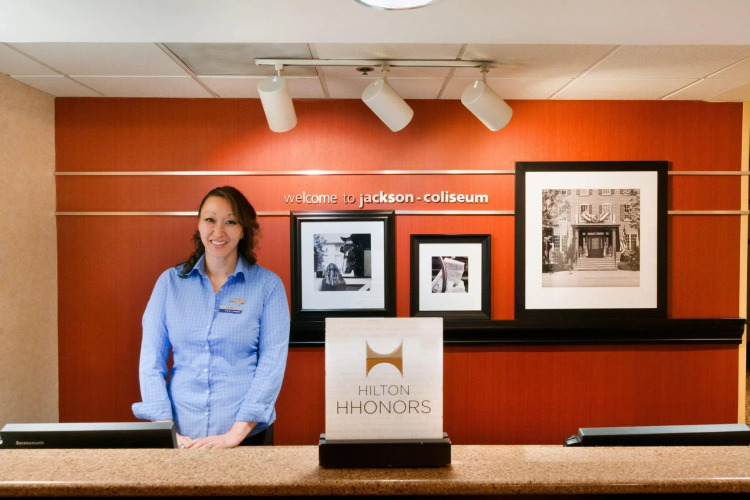 Отель Hampton Inn & Suites Jackson-Coliseum 2 звезды, адрес на карте Джексон, 320 Greymont Avenue, с описанием номеров и возможностью онлайн бронирования на сайте vashotel.ru , стоимость проживания и удобства.