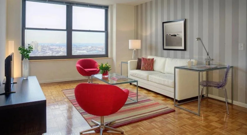 Отель Premier Furnished Apt at Grove Pointe, адрес на карте Джерси, 100 Christopher Columbus Dr, с описанием номеров и доступностью онлайн бронирования на сайте vashotel.ru , цены проживания и удобства.