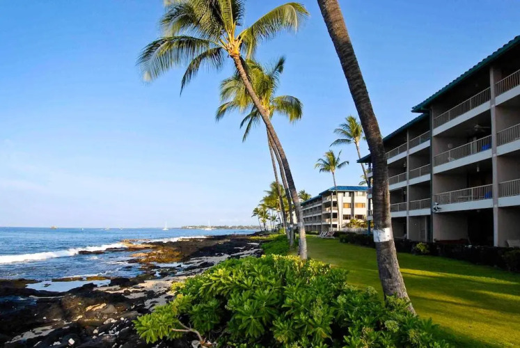 Отель Kona Reef, A Raintree Vacation Club Resort 3 звезды, адрес на карте Кайлуа-Кона, 75-5888 Alii Drive, с характеристиками номеров и возможностью онлайн бронирования на ресурсе vashotel.ru , стоимость проживания и удобства.