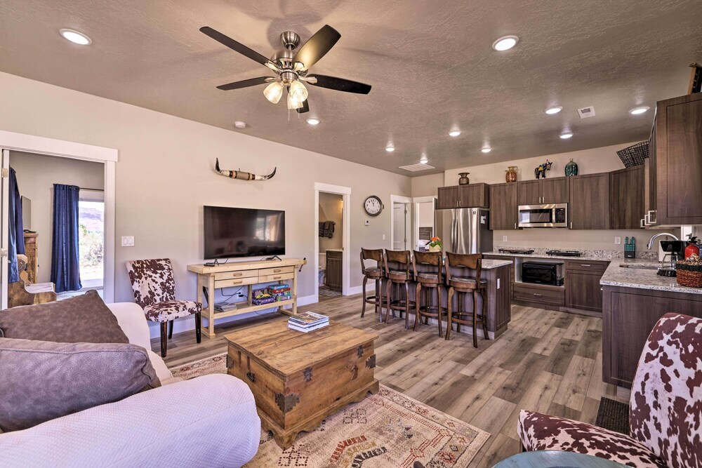 Отель Quiet Kanab Home w/ Panoramic Views & Porch! 3 звезды, адрес на карте Канаб, 834 W Grand Canyon Dr, с характеристиками номеров и доступностью онлайн бронирования на сайте vashotel.ru , стоимость проживания и удобства.