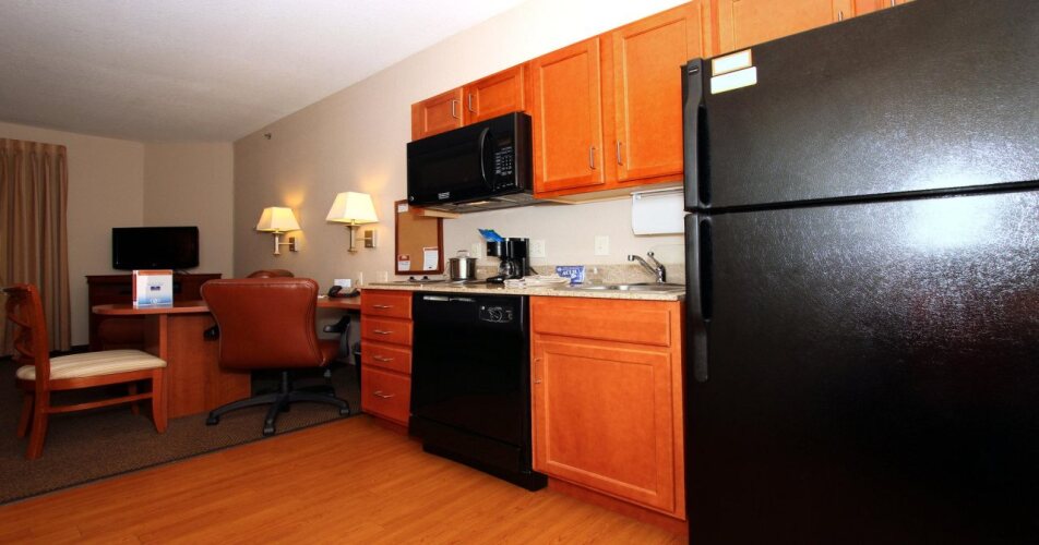 Отель Candlewood Suites Kansas City Airport, адрес на карте Канзас-Сити, 11110 Nw Ambassador, с описанием номеров и возможностью онлайн бронирования на сайте ВашОтель.RU , стоимость проживания и удобства.