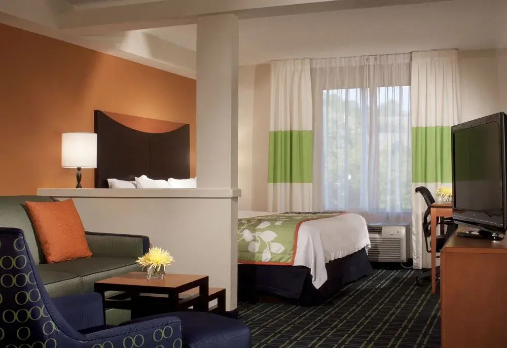 Отель Fairfield Inn & Suites Atlanta Kennesaw 2 звезды, адрес на карте Кеннесоу, 3425 Busbee Dr NW, Kennesaw, GA 30144, USA, с описанием номеров и доступностью онлайн бронирования на ресурсе vashotel.ru , стоимость проживания и удобства.
