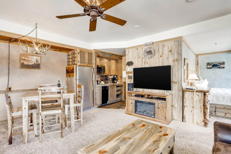 Отель Walk To Slopes! Newly Remodeled Studio - Kids Ski Free 1 Bedroom Condo 3 звезды, адрес на карте Кистоун, 1211 West Keystone Road, с характеристиками номеров и возможностью онлайн бронирования на сайте vashotel.ru , цены проживания и удобства.