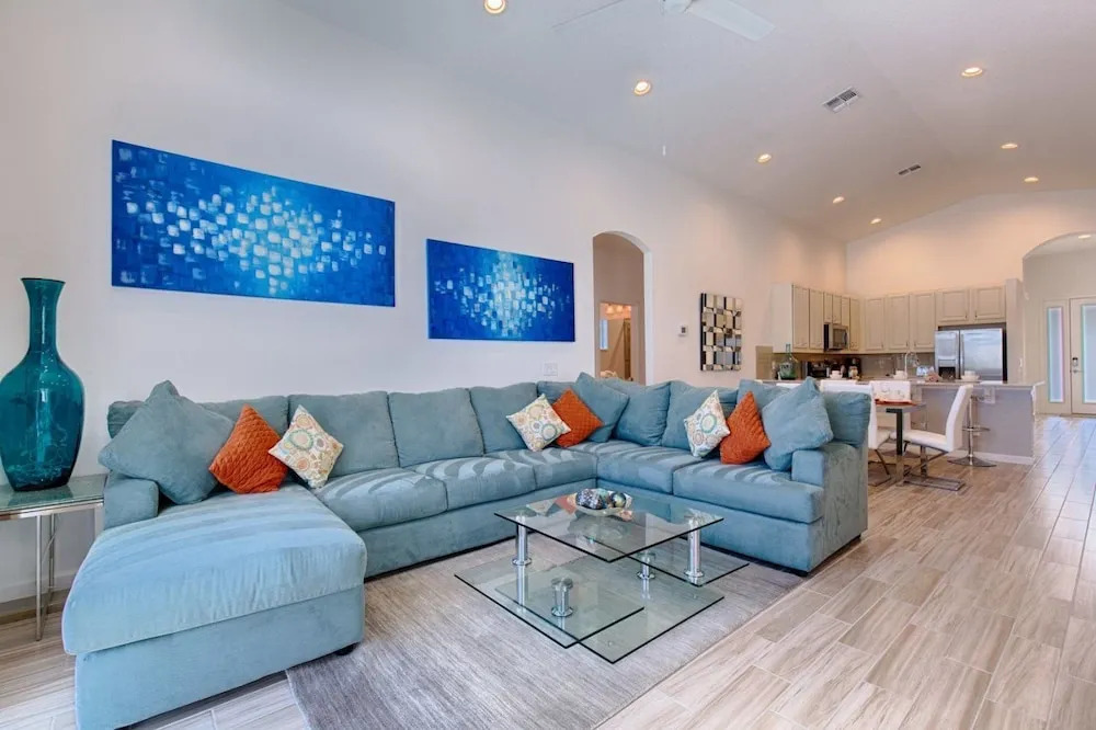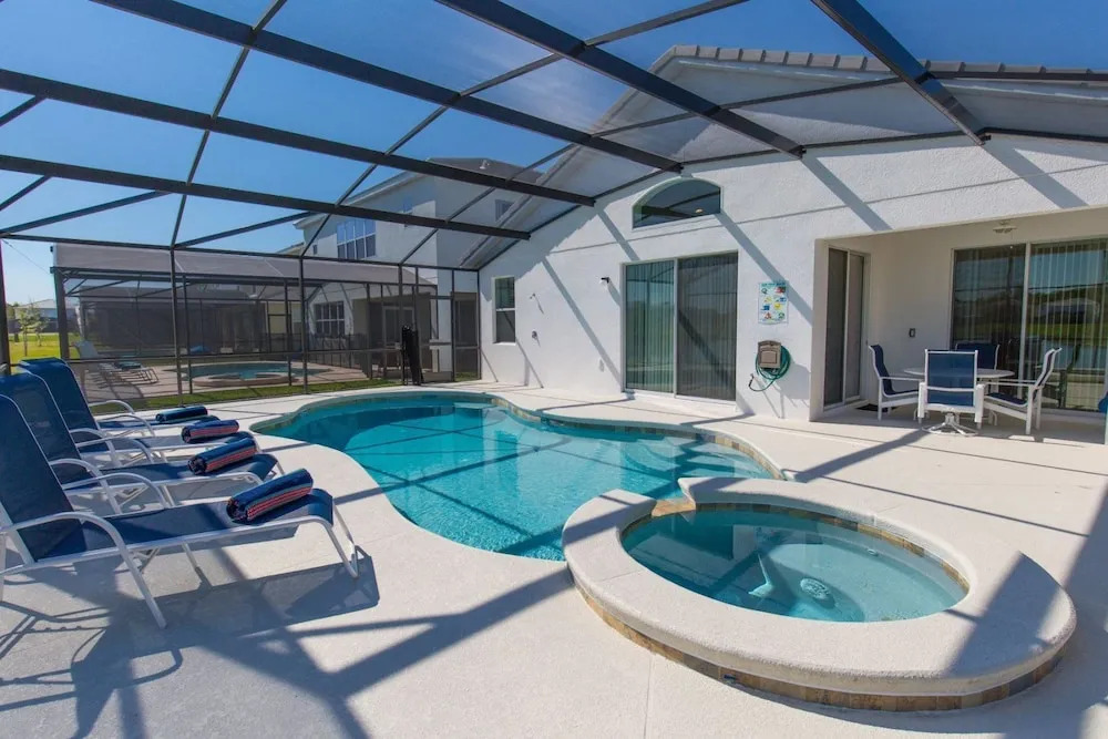 Отель Stunning 4 bed Villa With Modern Decor and a South Facing Pool and spa Overlooking Water - 372 3 звезды, адрес на карте Киссимми, 4508 Monado Drive, с описанием номеров и возможностью онлайн бронирования на площадке ВашОтель.RU , стоимость проживания и удобства.