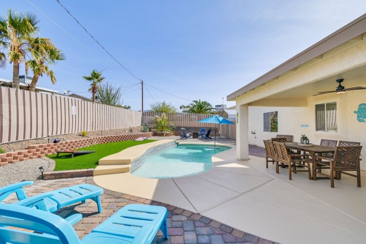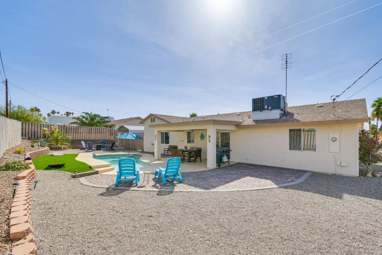 Отель Lake Havasu Getaway w/ Pool ~ 4 Mi to Lake! 3 звезды, адрес на карте Лейк-Хавасу-Сити, 2855 Swirl Dr, с характеристиками номеров и возможностью онлайн бронирования на ресурсе vashotel.ru , стоимость проживания и удобства.
