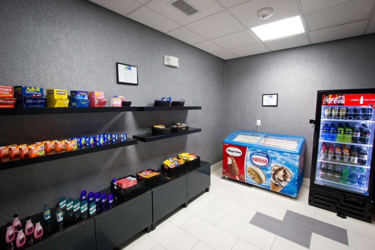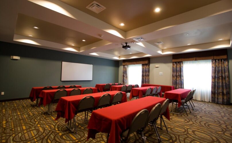 Гостям отеля Holiday Inn Express and Suites предоставляют бесплатный континентальный завтрак в обеденном зале. Недалеко от отеля находятся бары и рестораны, в которых вы можете поужинать и провести приятный вечер.