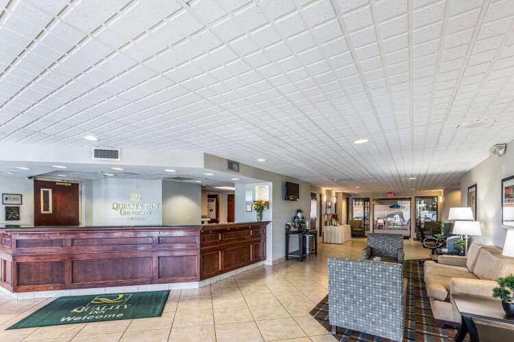 В кондиционируемых номерах (105) отеля Quality Inn University предоставляются следующие удобства: кофеваркачайник и сейфы. Постельные принадлежности включают постельные принадлежности премиум-класса. В номерах есть холодильник и микроволновая печь. В ванных комнатах есть бесплатные туалетные принадлежности, а также фен. Бесплатно предоставляется беспроводной доступ в Интернет. В номерах имеется бесплатная газета (пн-пт); предоставляется возможность совершать бесплатные местные звонки (могут применяться ограничения). Имеется возможность просмотра кабельных телеканалов премиум-класса. Также предоставляются следующие удобства: утюг, гладильная доска и радиочасы. По запросу предоставляется: услуга пробуждения по телефону; обслуживание номеров выполняется ежедневно.
