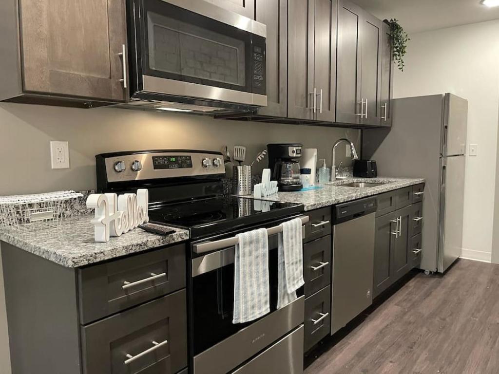 Отель Apt 252 Cozy and Sleek Dwelling Min from Ft Leavenworth 1 звезда, адрес на карте Ливенуорт, 1100 North 2nd Street Apt 254, с описанием номеров и доступностью онлайн бронирования на ресурсе vashotel.ru , стоимость проживания и удобства.