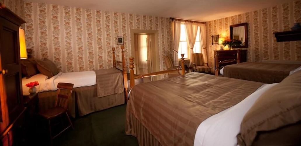 Отель, где хорошо отдыхать перед долгими прогулками. Отель «The Golden Lamb» расположен в Ливане. Этот отель находится в самом центре города. Утром — выпейте кофе, наблюдая из окна за жизнью города. Рядом с отелем — Музей и историческое общество округа Воррен, Железная дорога Lebanon Mason Monroe и Историческая усадьба Glendower.