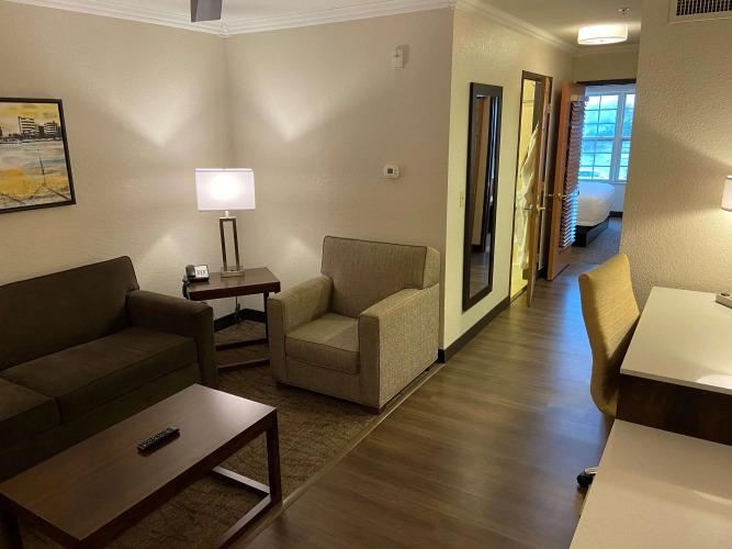 Отель располагает 95 комфортабельными номерами. Гостей ждут удобные кровати, рабочие столы и уютные гостиные уголки. Номера оснащены кондиционерами, имеют кабельное телевидение, чайник или кофеварку, микроволновую печь и холодильник. В некоторых номерах установлены и гидромассажные ванны.
