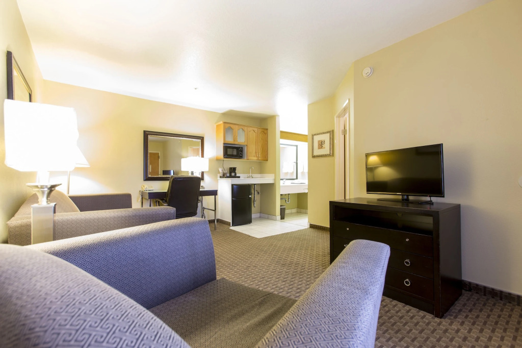В отеле Quality Inn & Suites имеется 52 номера с ванной комнатой и мини-кухней, где вы найдете холодильник, чайник и микроволновую печь. В каждом номере оборудовано эргономичное рабочее место, есть телефон и телевизор с возможностью просмотра спутниковых каналов. Бесплатно предоставляется высокоскоростной доступ в Интернет.