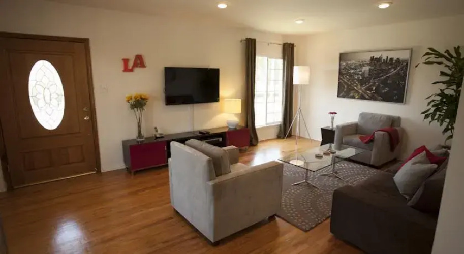 Отель San Vicente House, адрес на карте Лос-Анджелес, 5023 San Vicente Boulevard, с характеристиками номеров и доступностью онлайн бронирования на ресурсе ВашОтель.RU , стоимость проживания и удобства.