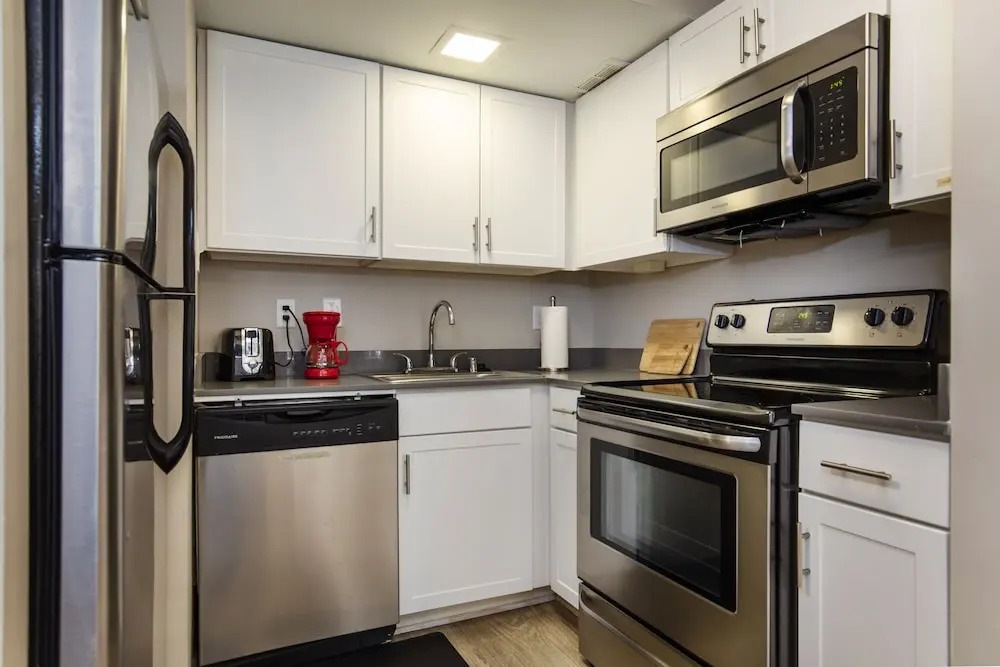 Отель TWO Luxurious 1 BR CozySuites in Downtown Louisville, адрес на карте Льюисвилл, Louisville, 40202, United States of America, с характеристиками номеров и правом онлайн бронирования на площадке vashotel.ru , стоимость проживания и удобства.
