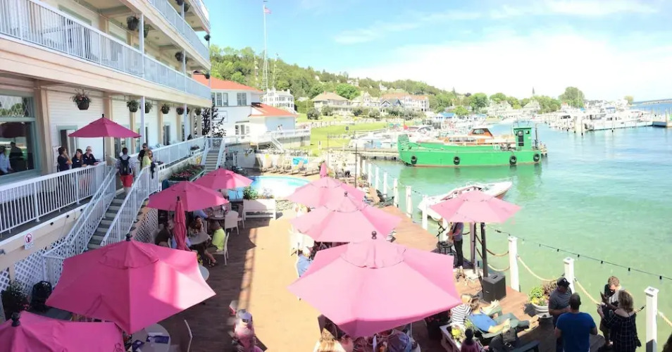Отель Chippewa Hotel Waterfront 3 звезды, адрес на карте о. Макино, 7221 Main St #103, Mackinac Island, Michigan, с описанием номеров и правом онлайн бронирования на ресурсе vashotel.ru , стоимость проживания и удобства.