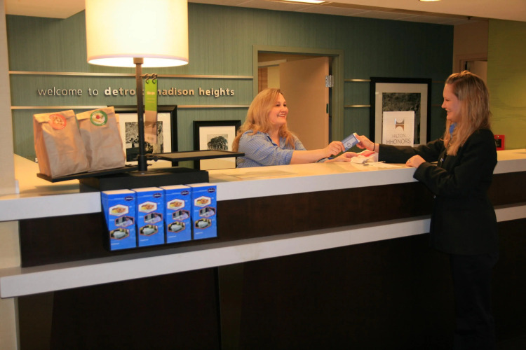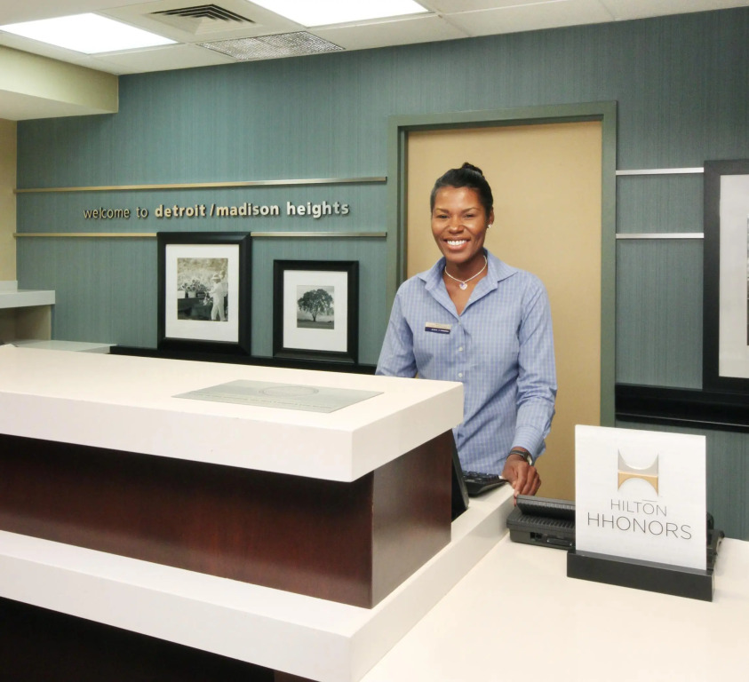 Отель Hampton Inn Detroit/Madison Heights/South Troy 2 звезды, адрес на карте Мэдисон-Хейтс, 32420 Stephenson Hwy, с характеристиками номеров и доступностью онлайн бронирования на ресурсе vashotel.ru , стоимость проживания и удобства.