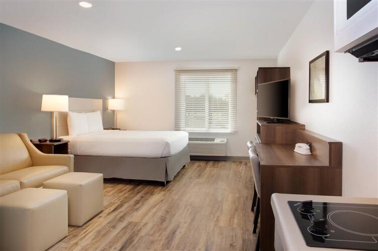 Отель WoodSpring Suites West Melbourne I-95 2 звезды, адрес на карте Мельбурн, 4650 West New Haven Avenue, с характеристиками номеров и доступностью онлайн бронирования на сайте vashotel.ru , стоимость проживания и удобства.
