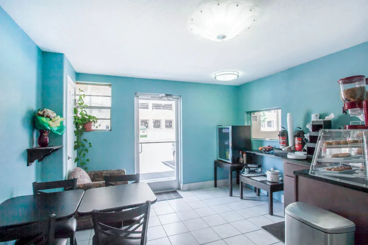 Обеденная зона гостиницы представлена рестораном и кафетерием в холле, ежедневно гостям предлагается бесплатный континентальный завтрак. Для удобства посетителей на территории имеется парковка для легковых автомобилей, а также для грузовиков и фургонов.
