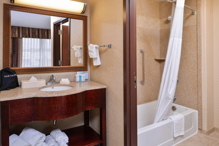 Отель Hampton Inn & Suites Boise Meridian располагает 128 номерах. Стандартная комплектация включает телевизор, телефон, рабочий стол, утюг и комод. В индивидуальных ванных комнатах имеются одноразовые туалетные принадлежности и фен.