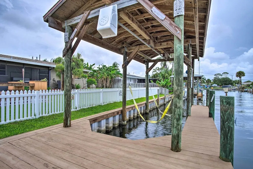 Отель Sunny Canalfront Getaway, 8 Mi to Cocoa Beach 3 звезды, адрес на карте Остров Меррит, 1640 Coquina Dr, с характеристиками номеров и доступностью онлайн бронирования на сайте ВашОтель.RU , стоимость проживания и удобства.