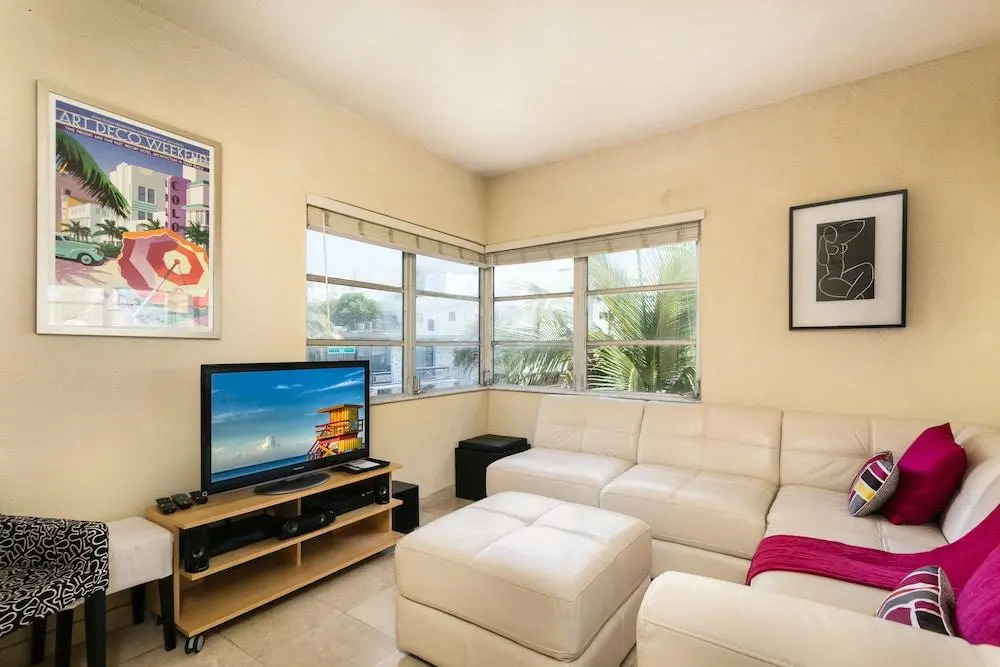 This property charges the following mandatory cleaning fees per stay, collected at the property: USD 109 for `Apartment, 2 Bedrooms` bookings, and USD 79 for all other bookings.Отель Deluxe Beach Apt, адрес на карте Майами-Бич, Collins Ave, с характеристиками номеров и доступностью онлайн бронирования на площадке vashotel.ru , стоимость проживания и удобства.